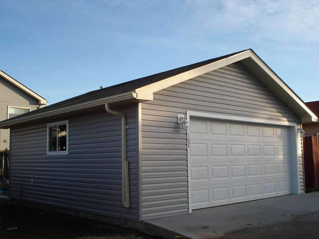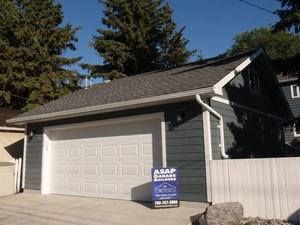 We consider both slope and style when designing your garage roof, ensuring it complements your home by matching elements like siding, roof pitch, soffit, fascia, gutters, eave overhangs, windows, exterior lighting, and trim for a cohesive, well-finished look.